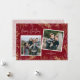 This elegant flat Christmas card features two square photos and is accented with lush gold winter botanicals on a dark red background. Add your own personal message on the back.