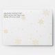 Pre-addressed - A spattering of gold snowflakes on the outside of this holiday envelope and inside green and gold Christmas tree design with gold deer.