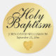 Holy Baptism is written in a large and formal font at the top of this gold sticker or envelope seal. The baby's name and baptism date are written below. The photo of a gold foil heart is included at the bottom. The perfect blend of traditional and modern design for this important event. All text is easily personalised.