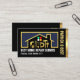 Overleaf, the same gold stripe theme cover is used with card details on the right side of the card. At the top is a creative gold "home handyman tools" logo you can use, followed by your prestigious name, contact details and a slogan caption which you can change.