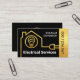 An all black cover features a gold home electrical circuit design with the power plug connected to a gold layer that has your contact details. Over at the top corner lies your prestigious name with the contact details near the base. Inside the home circuit is a gold light bulb logo with repair tools which you can use.