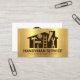 A faux gold cover is accentuated by a dark brown home that houses a set of handyman tools. A simple negative space design which blends the gold tools against the outer gold layer. The tools represent some of the service that you might offer e.g. the hammer for construction work, the roller brush and ladder for painting services etc. Near the base lies the business name and the contact details.