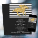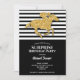 Birthday party invitations feature a faux gold glitter race horse on black and white stripes at the top and black area on the bottom for your party information. MATCHING items in our store.