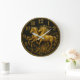 Gold horse plated wood equestrian elegant rustic luxury clock, horse lover gift, classic wooden wall clock, regal home decor, vintage horse artwork, decorative horse clock