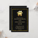 Graduation invitation suitable for real estate or architecture themes. Designed with a simple image of a gold gradient house on a black background. A faux gold foil border surrounds the design.