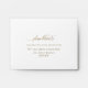Elegant white self- addressed RSVP envelope in white with gold faux foil texture inside. Ability to add your name(s) and address or to erase from text boxes to add later at home. Graceful modern hand written calligraphy details. Note: typography is not in real foil, but rather print in a golden hue. Part of our "Elegant Calligraphy Minimalist Wedding" collection. Matching invitation envelope availalbe.