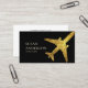 Make a bold and luxurious impression with this black business card featuring a sparkling gold jet silhouette. Ideal for travel agents, private flight services, or high-end travel professionals seeking an elegant and memorable design.