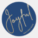Gold JOYFUL on Blue Christmas Classic Round Sticker