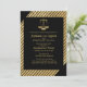Celebrate your graduation with this trendy style invitation featuring shimmering gold horizontal stripes with a black overlay.