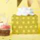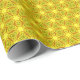 This striking wrapping paper features a bold gold kaleidoscope fractal pattern arranged in a seamless geometric repeat. Intricate symmetrical shapes and layered textures create a dramatic design that blends abstract symmetry, psychedelic colour, and modern digital art into a vibrant decorative pattern.