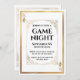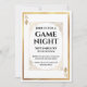 This Game Night party invitation features a classic playing card design. An ornate, vintage style frame surrounds the centre text area. A matching gold foil design frame borders the invitation. Two gold diamonds and the King monogram are printed in opposite corners, similar to the layout in a deck of cards.
