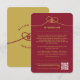 Modern minimalist double happiness knot of union, love and marriage in yellow gold and burgundy red chinese wedding enclosure card.