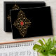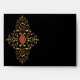 Gold filigree swirls black envelope.