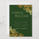 The intricate gold lace foil-look design pops against the fresh green background, creating a stunning and sophisticated effect. These invitations are perfect for outdoor, garden, or nature-inspired weddings, as well as for couples who want a touch of glamour in their invitation.