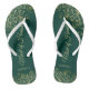 These beautiful wedding flip flops are a great way to thank and recognise your Maid of Honour while saving her feet at the same time. Features an elegant design with golden lace frills on an emerald green background and fancy gold coloured script lettering. The test reads Maid of Honour with her name below. Great way to thank her for being part of your special day, while letting her feet rest too!