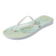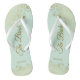 Dance the night away with these beautiful wedding flip flops. Designed for the bride, they feature a simple yet elegant design with gold coloured script lettering on a light neo mint green coloured background and fancy golden lace curls and swirls. Beautiful way to stay fancy and appropriate while giving your feet a break after a long day.