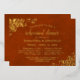 This beautiful rehearsal dinner invitation features an elegant design with gold foil printing on a marbled rust orange or burnt umber coloured background. The design features fancy script calligraphy with golden lace curls and swirls in the corners. There is space for information on both the wedding rehearsal and the dinner. Wonderful way to thank the bridal party while making sure they have all of the info they need.