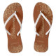 These elegant wedding flip flops are a great way to thank and recognise your bridesmaids, while giving their feet a rest after a long day. The beautiful design features an elegant design with golden lace frills on a rust orange coloured background and fancy gold coloured script lettering. The text reads Bridesmaid with her name below. Great way to thank her for being part of your special day!