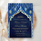 Gold Lanterns Royal Blue Curtain Muslim Wedding Invitation
