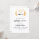 White background. A classic faux gold laurel wreath and a graduation cap. Personalise and add the year, name and details. Black text.