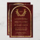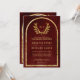 Gold Laurel Wreath Leaves Burgundy Red Wedding Invitation