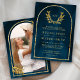 Gold Laurel Wreath Leaves Ocean Blue Wedding Invitation