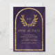 Gold Laurel Wreath Leaves Royal Purple Wedding Save The Date
