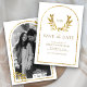 Gold Laurel Wreath Leaves White Wedding Save The Date