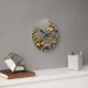 The gold leaf texture wraps around the edges, making the clock a stunning visual from any angle. This circle analogue clock serves as both a functional timepiece and a luxurious decorative element, perfect for spaces seeking a touch of elegance and nature-inspired beauty.