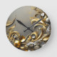 A gold leaf design circle analogue clock radiates elegance and artistry, perfect for luxurious and nature-inspired interiors. The clock features a round frame delicately adorned with intricately textured gold leaf patterns, mimicking the look of real gold leaf pressed onto the surface. This gives the clock a shimmering, opulent finish, where each leaf detail catches the light and adds depth to the design.