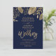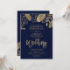 Gold leaves fall typography navy blue wedding invitation