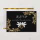 Gold Leaves Frame on Black RSVP Card featuring an elegant black background with a frame of gold leaves on the front and the back has gold ribbon border with a white background. The back has details for the recipient to fill out. Designed to coordinate with the "Doves, Heart & Gold Leaves" Wedding Collection. To change details, click «Personalise». To move the text or change the text size, font, or colour click «Click to customise further»
