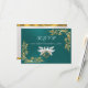 Gold Leaves Frame on Teal RSVP Card featuring an elegant teal background with a frame of gold leaves on the front and the back has gold ribbon border with a white background. The back has details for the recipient to fill out. Designed to coordinate with the "Doves, Heart & Gold Leaves" Wedding Collection. To change details, click «Personalise». To move the text or change the text size, font, or colour click «Click to customise further»