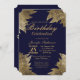 Gold Leaves on Navy Blue Birthday Party Invitation