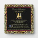 Create a touch of elegance with this elegant black and gold leopard print hair and beauty boutique business information sign photo plaque with a FAUX gold-colored silhouette of a woman with long wavy hair. Who can resist a pair of deep red high healed shoes with bows? She is admiring her reflection in a vanity mirror. Personalize this chic animal print design by adding the name of the certified beautician or hair stylist, as well as your boutique hours. Flat printed image, NOT reflective metallic.