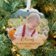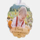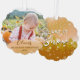 Let it snow! Display your own special memory with this beautiful baby's 2nd Christmas gold ornament. Easily insert your cherished photo into the provided template, as well as the name and year to make your own ones. On the back side, snow is dancing in the crystal gold sky, and downwards the dark golden brown forest on the bottom.