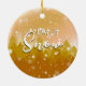 Gold Let it Snow Photo 1st Christmas Family of 3 Ceramic Ornament
