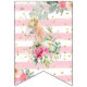A beautiful unicorns surrounded by delicate flowers. The background of each part has pastel pink and white watercolor brush strokes and sparkling golden or rose glitter dots. Each part has a gold letter with foil effect, forming the words "happy birthday". Ideal for Baby Shower and Children's Birthday parties.