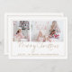 Gold Line Border 2 Photo Script Merry Christmas Card. Minimalist elegance with a single line gold border. Replace the two sample photos with your own and personalise with your greeting and names at the bottom. Merry Christmas is in a stylish set script.
