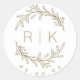 Gold Line Art Botanical Wreath Wedding Monogram Classic Round Sticker