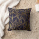 Gold Line Leaf Pattern on Blue Throw Pillow