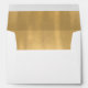 Elegant wedding invitation envelope with graphics of a gold foil look, on the inside. The back flap has a black and gold stripe on the edge. Personalise the return address, on the back flap, for your special day.