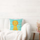 Bold,colourful, fun, modern design of chevron stripes of aqua blue and white with a gold striped lion wearing a golden crown on each side of the throw pillow!