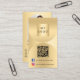 A faux gold looking background. Personalise and add your business logo,photo, name, title and contact information. Add your website url/link to the Qr code. With Facebook and Instagram icons. Black text.