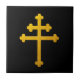 Gold Lorraine Cross on Black / Christian Ceramic Tile