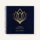 Chic and elegant notebook featuring a faux gold foil illustration of lotus flower on a classic navy blue background.