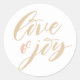 This small round sticker features a simple message of love and joy in soft hues. Makes a great closure sticker or seal to dress up your envelopes this holiday season.