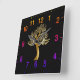Gold lovers hearts Tree with rainbow numbers Square Wall Clock