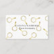Stylish business card in gold, black, and white with a pattern of magnifying glasses. A clean minimalist business card for a private eye.