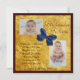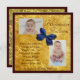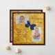A gold background, framed by Mahogany colour, and a navy blue, three dimensional design, bow, make this an elegant boy's, birth announcement. Two photo frames that allow you to show off your precious little boy, and easy to customise text, make this a great choice for such an important message.